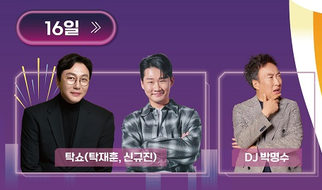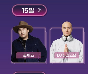 - 힙합 & DJ 퍼포먼스: 조째즈의 감성적인 재즈 무대와 함께, DJ 수빈 (달샤벳 출신), DJ 박명수, DJ 뉴진스님의 화려한 디제잉이 펼쳐집니다. 밤이 깊어질수록 축제의 열기는 더욱 뜨거워질 거예요!