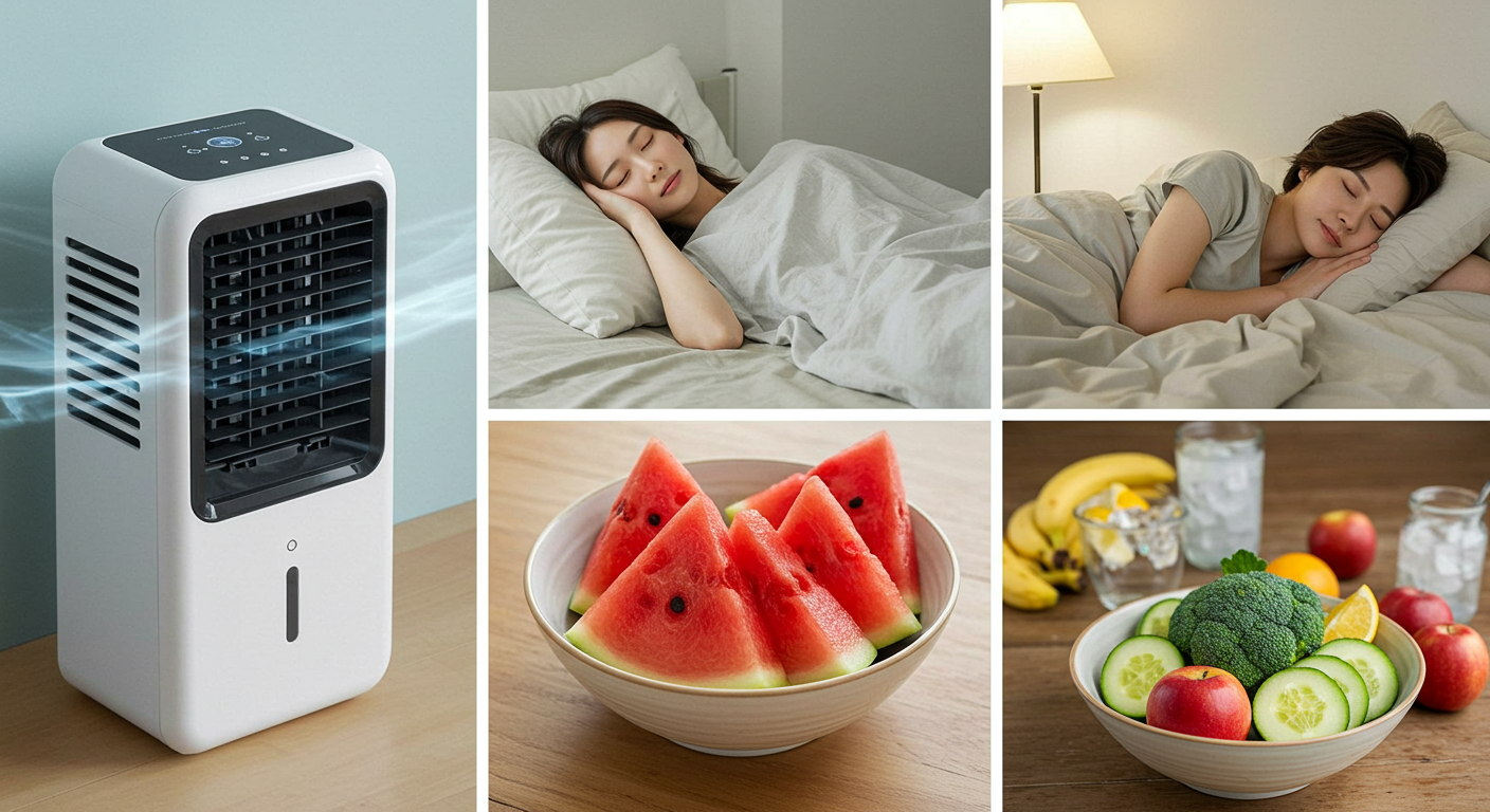 - 휴식과 수면으로 체력 보존하기: 짧은 낮잠, 취침 전 샤워/족욕 루틴, 쾌적한 수면 환경(24~26도, 40~60% 습도) 조성, 에어컨/선풍기 현명한 사용, 그리고 적절한 실외 활동으로 지친 몸과 마음을 회복하세요.