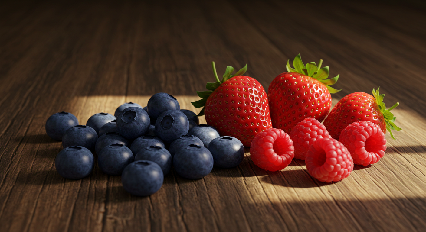 블루베리, 딸기, 라즈베리 등 알록달록한 베리류는 맛도 좋지만, 염증을 억제하는 데 탁월한 효과를 보입니다. 베리류의 선명한 색깔을 내는 성분은 바로 **안토시아닌(Anthocyanins)**입니다.