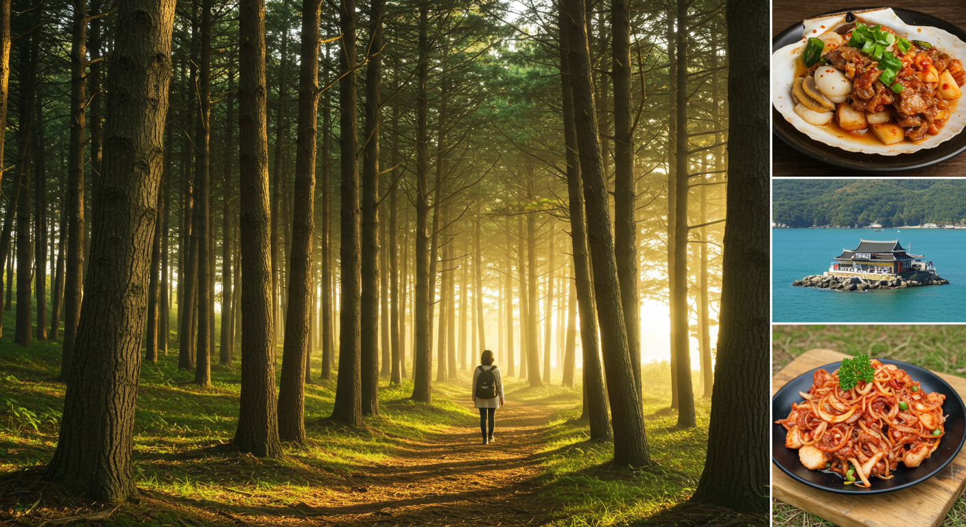 - 숙박 및 교통: 숲속의 집, 바다 전망 펜션 등 다양한 숙박 옵션과 자가용, 고속버스 등 편리한 교통 정보를 활용해 보세요.