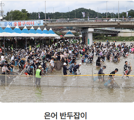 - 입장료: 축제장은 무료 입장. 다만, 맨손 은어 잡이, 수상 놀이 등 주요 체험 프로그램은 유료로 운영됩니다. (현장 발권 또는 사전 예약 필수. 자세한 요금은 공식 홈페이지 참조)