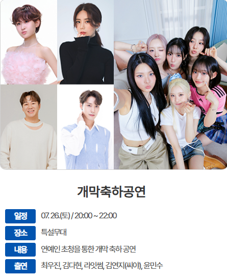 - 축제 기간: 2025년 7월 26일 (토) ~ 2025년 8월 3일 (일) (총 9일간)
