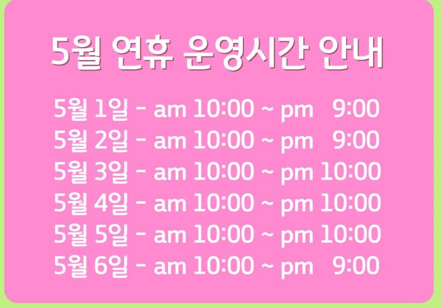 | 운영시간 | 평일·주말 10:00 ~ 22:00 |